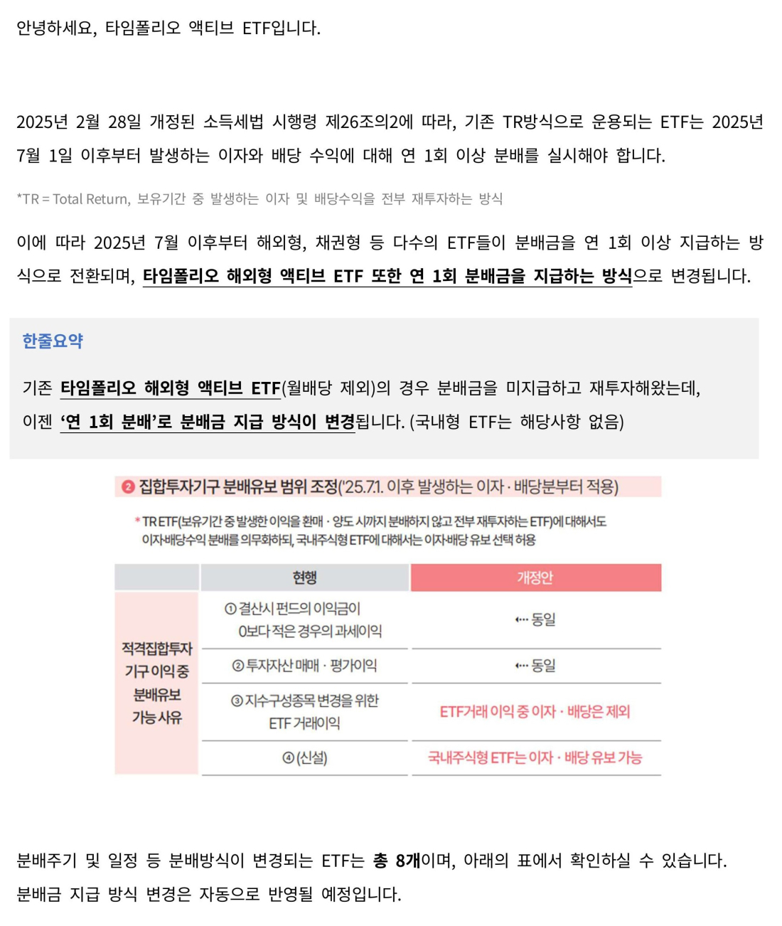 소득세법 시행령 개정에 따른 분배금 지급 방식 변경 ETF 안내
