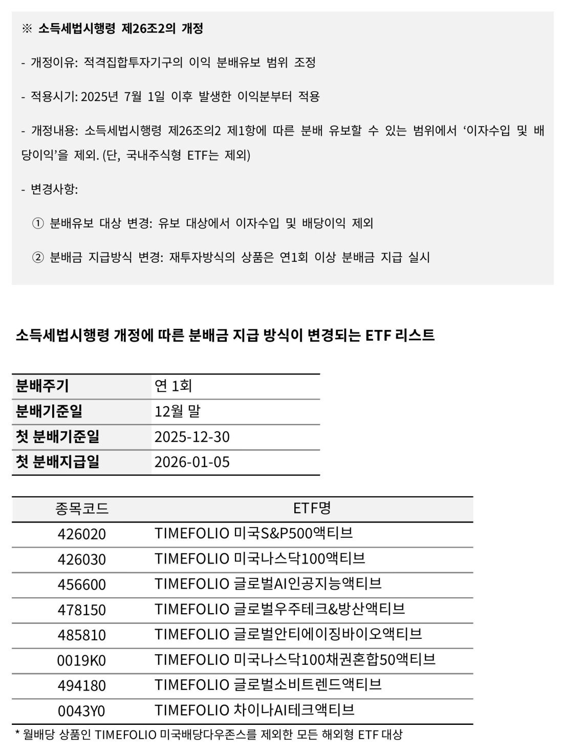 소득세법 시행령 개정에 따른 분배금 지급 방식 변경 ETF 안내